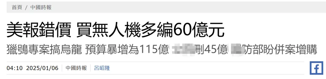 对于从美国采购的无人机报价大幅变动,不少岛内网友联想到先前美国军火商雷神公司对台军售涉抬价诈欺一事,后该公司遭美国政府查获后达成认罪协商,赔罚款共计新台币52亿元。